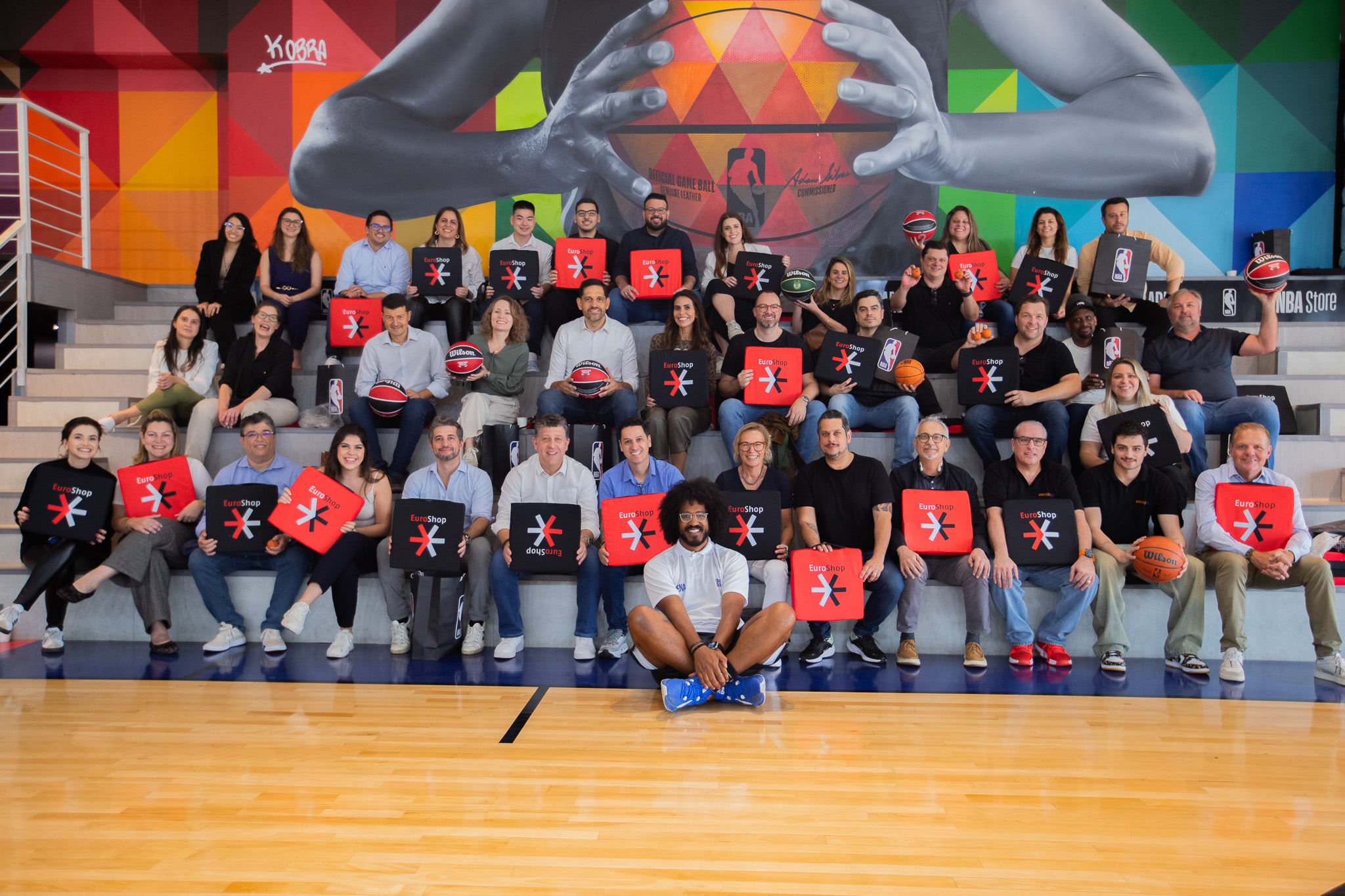 Os participantes ainda assistiram à palestra de Roger Ahlgrimm, diretor sênior de licenciamento da NBA Store, que trouxe aprendizados sobre experiências de marca e engajamento com o consumidor, e entraram em quadra onde interagiram em uma divertida dinâmica com direito a brindes oficiais da marca americana.